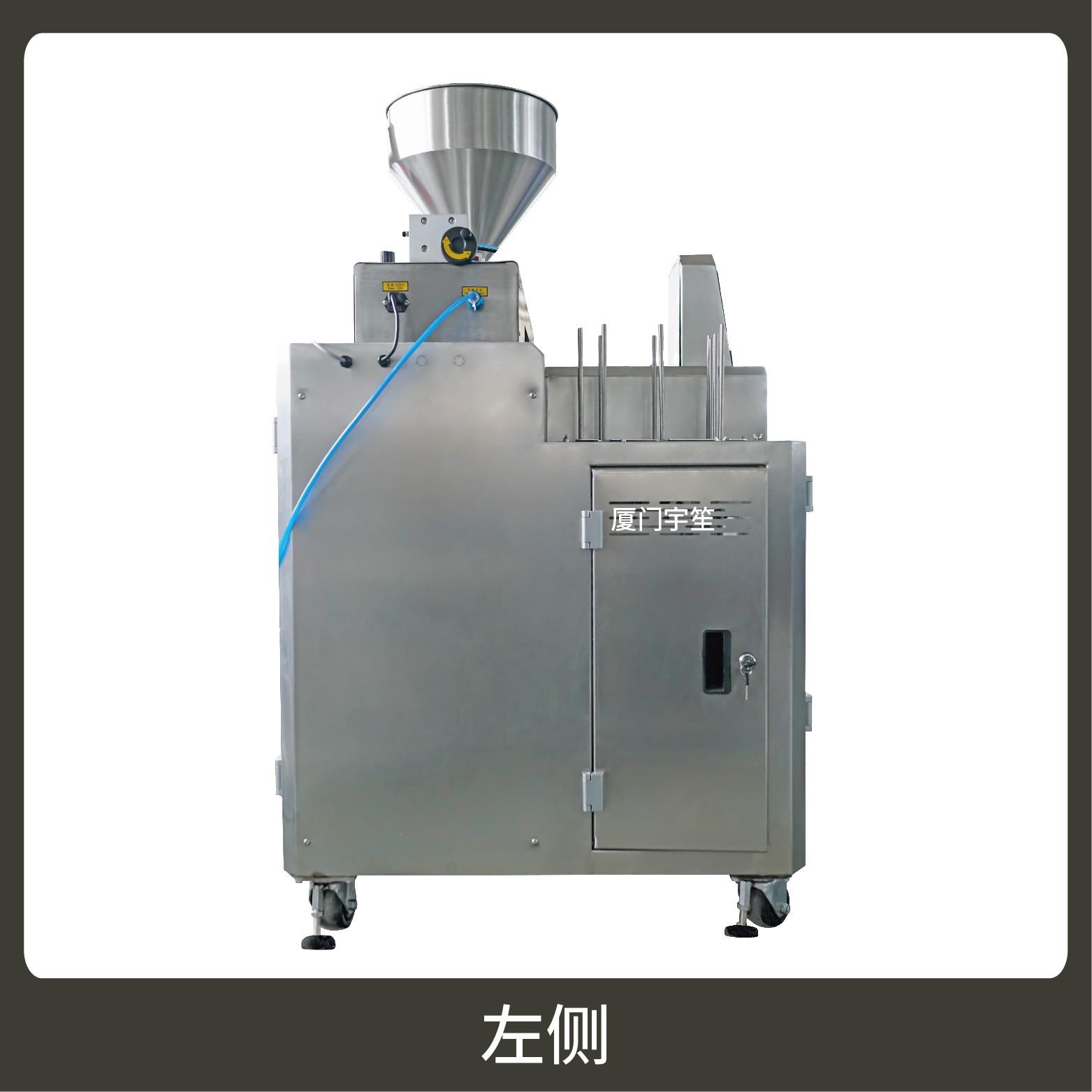 2、調(diào)試方便、占用空間小。包裝流程全自動,無需人工操作。可根據(jù)充填物料的性質(zhì)選配不同的下料結(jié)構(gòu)。